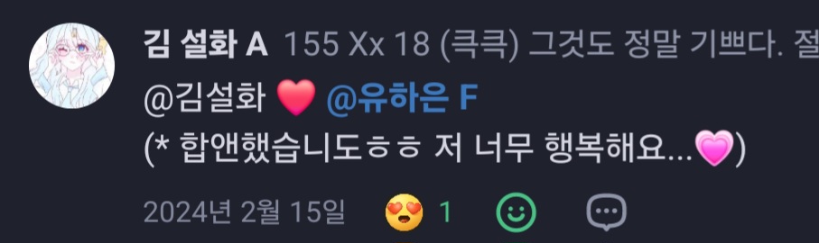 성사 순서대로설화하은 → 지택세원 → 예훈아진 → 예민 → 이든우연• 예민, 이든우연은 기력 부족으로 나중에 작성하겠습니다[김설화]제가 >>첫커커뮤러가 아니였던 저는 오랫동안 버터와플(버와)과 인터넷 지인 관계였는데요,저랑 자캐덕질을 오.지게 하다가갑자기 어느날 커뮤에 빠졋고저까지 꼬드겨서 전 자캐궈뮤를 찍먹해보게 됩니다..그렇게 간 커뮤가 청아커첫커인데 개미친 대형커였음..(200명 가까이 됏엇나? 암튼그랫음)전 처음 맛보는 신세계에 정신없이 로그뺑이를 쳣습니다.이때가 학업으로 바빴을 때라... 그림 그릴 시간이 얼마 없었지만 전 답멘을 않.ㅊ밀고 로그 그리기에만 ㅈㄴ 신경썼습니다 (원래 커뮤는 다 이 건줄 알았음)그래서 애들이랑 서사가 얼마 없엇는데,,뒤늦게 답멘을 조금씩 밀었고설화의 의상게임에서 ..