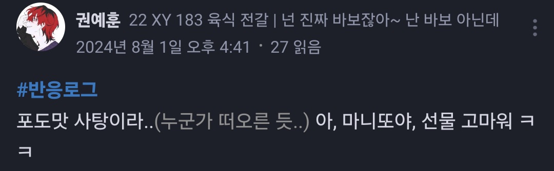 ㅈ.ㄴ티를내기위해서 권예훈한테 포도맛 사탕을 줬어 (전부터 일댈에서 포도사탕에 대해 계속 언긎했엇름)